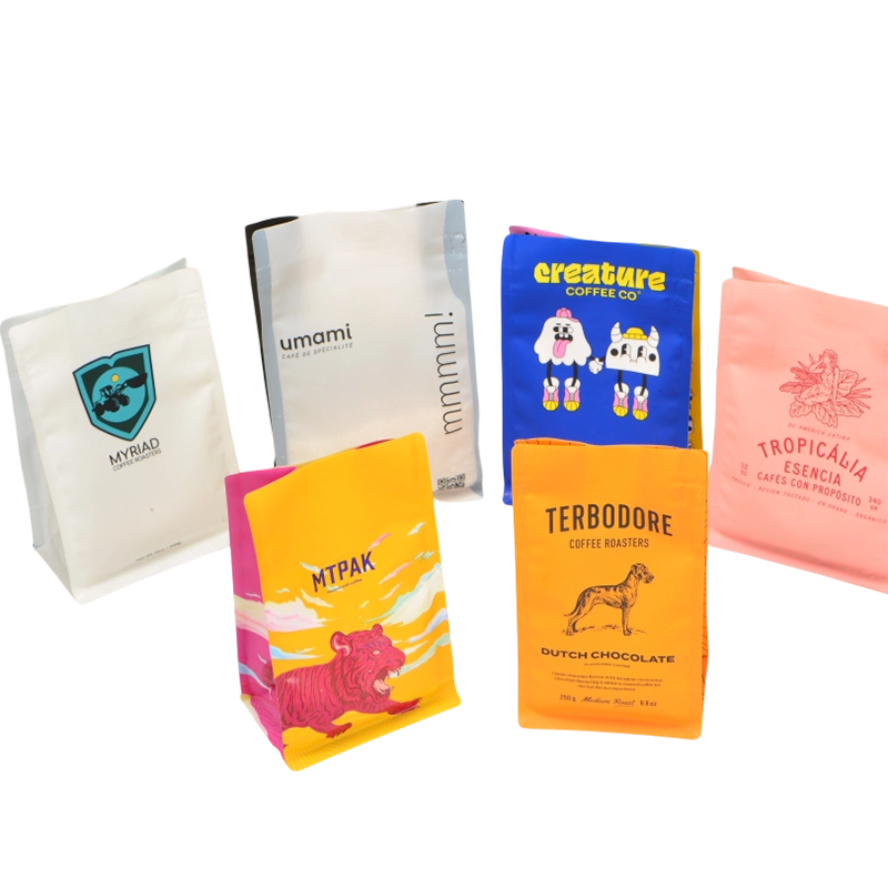 八边封结构形成平整的正面、背面和侧面,大限度地增加了可用于印刷品牌图案和产品信息的面积,而风琴式底部和角封则确保了包装袋无需展示支架或辅助固定装置即可保持稳定站立。这种包装形式尤其适用于高端咖啡和茶的包装,宽大的底部可容纳产品体积,而平整的侧面则有利于高质量的印刷效果。